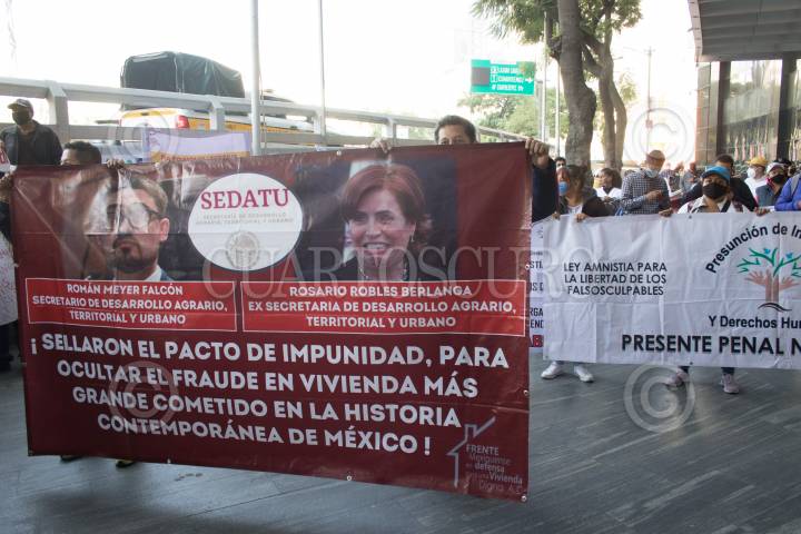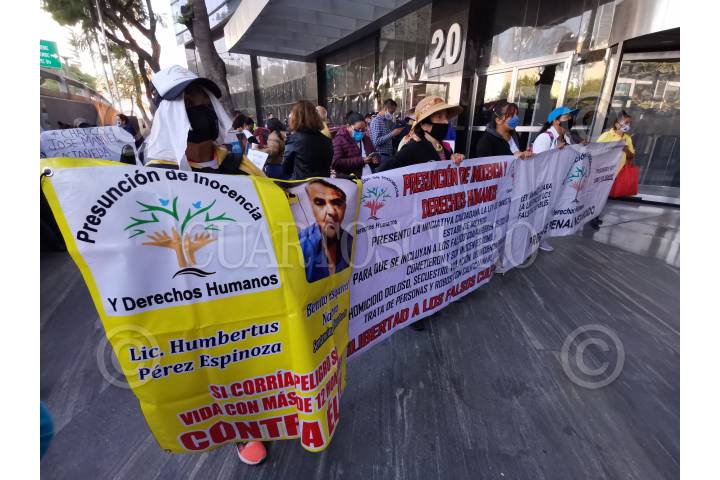 Integrantes de las organizaciones Presunción de Inocencia y Derechos Humanos, y Frente Mexiquense en Defensa para Vivienda Digna, se manifestaron afuera de la FGR para exigir que se ejerza acción penal a los supuestos responsables de un megafraude inmobiliario perpetrado en el gobierno del ex Presidente, Enrique Peña Nieto. Además su líder José Humbertus Pérez Espinosa entregó un proyecto jurídico que beneficia a las personas que han sido encarceladas a pesar de que les fue violada su presunción de inocencia.