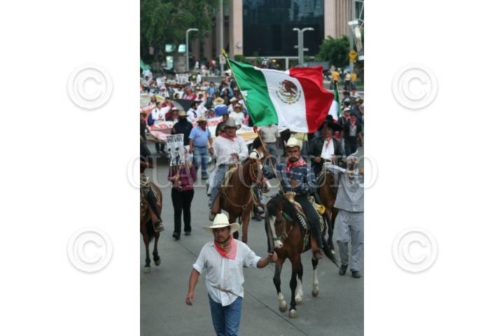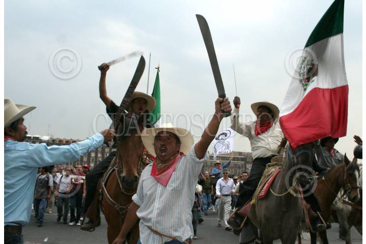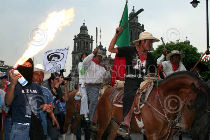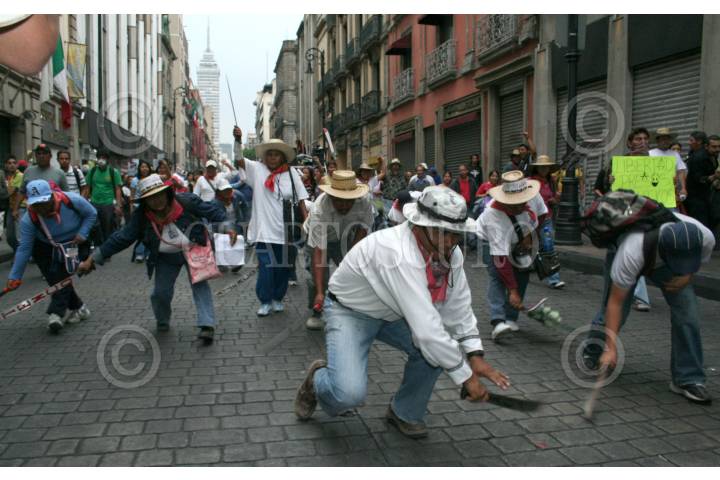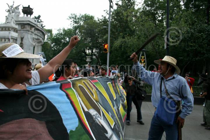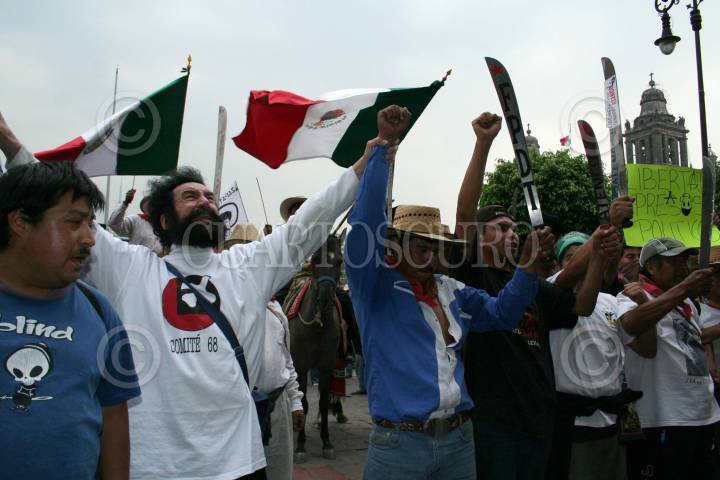 MÉXICO, D.F. 04MAYO2007.- Habitantes de San Salvador Atenco, acompañados de simpatizantes, marcharon a un año del encarcelamiento de los presos políticos. A su llegada al Zócalo capitalino protestaron frenta a Palacio Nacional. FOTO: PAOLA HIDALGO/CUARTOSCURO.COM
