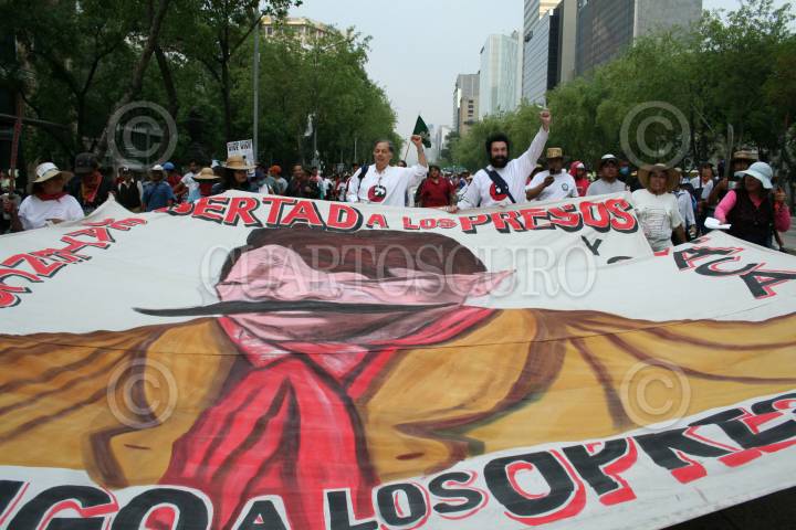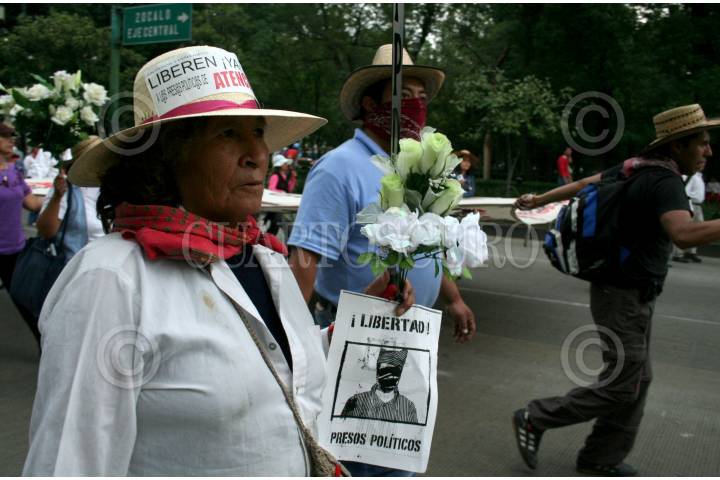 MÉXICO, D.F. 04MAYO2007.- Habitantes de San Salvador Atenco, acompañados de simpatizantes, marcharon a un año del encarcelamiento de los presos políticos. FOTO: PAOLA HIDALGO/CUARTOSCURO.COM