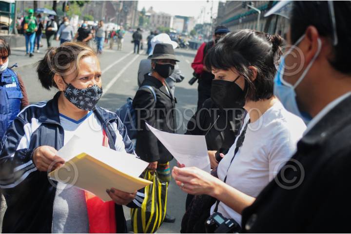 Una madre y su hija protestan encadenadas frente a Palacio Nacional