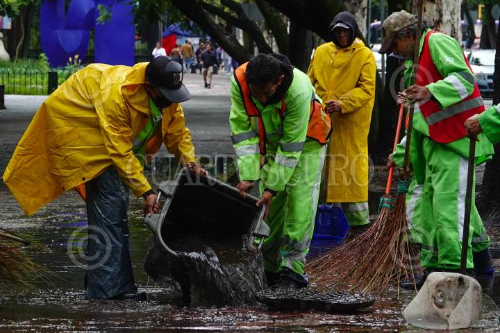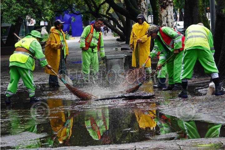 CIUDAD DE MÉXICO, 26JULIO2024.- Debido a las lluvias constantes en la capital, se registraron diversos encharcamientos en vialidades de la ciudad, en este sentido trabajadores del gobierno realizaron trabajos de dezasolve. FOTOS: ROGELIO MORALES /CUARTOSCURO.COM