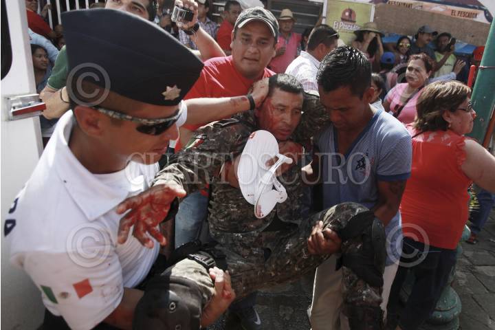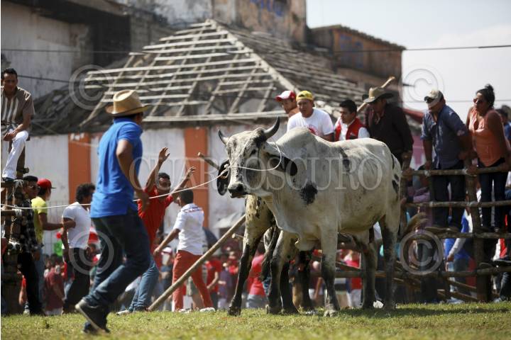 TLACOTALPAN, VERACRUZ, 01FEBRERO2015.- Este domingo se llevó a cabo el tradicional Embalse de Toros 2015, durante las fiestas de la Candelaria, dicho evento se realizó entre golpes y agresiones a los semovientes. Así mismo se registraron diversos asistentes heridos. Durante el acto un grupo de activistas protestó contra el maltrato animal y pidió la cancelación de la fiesta. FOTO: FÉLIX MÁRQUEZ / CUARTOSCURO.COM