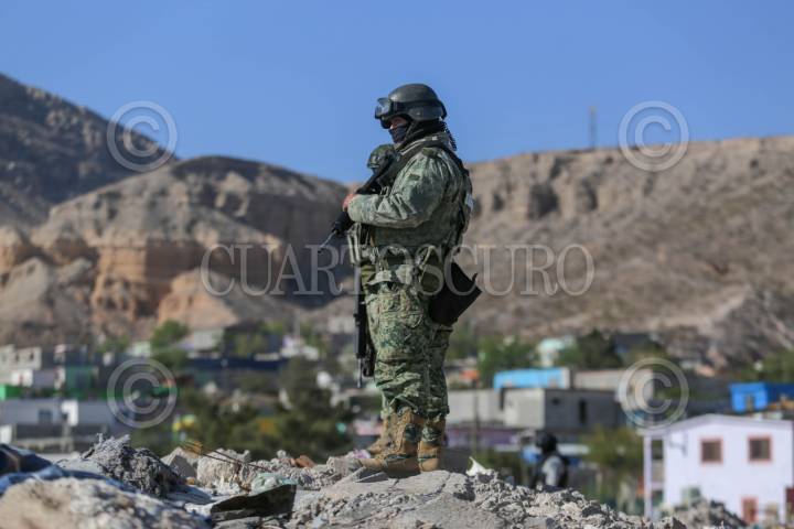 CIUDAD JUÁREZ, CHIAHUAHUA, 08ABRIL2025.- Esta mañana, los cuerpos de un hombre y una mujer fueron encontrados envueltos en cobijas en un barranco de la colonia Plutarco Elías Calles, frente al kínder Emiliano Zapata, en Ciudad Juárez. El hallazgo ocurrió en el cruce de las calles Azcapotzalco e Isla Filipinas. Al lugar acudieron agentes municipales, elementos del Ejército, la Guardia Nacional y personal de la Fiscalía de la Mujer, para investigar el crimen. Con este caso, suman 22 homicidios en la ciudad durante el mes de abril. FOTO: CARLOS SÁNCHEZ COLUNGA/CUARTOSCURO.COM