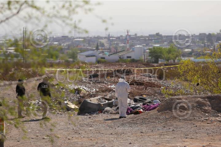 CIUDAD JUÁREZ, CHIHUAHUA, 15MAYO2025.- Esta mañana dos cuerpos encobijados fueron abandonados en la vía pública, a un costado de un yonke ubicado en la colonia Salvárcar. El hallazgo se dio tras un reporte al número de emergencias y movilizó a policías municipales, agentes estatales y elementos de la Guardia Nacional. Con este hecho, suman 26 homicidios en lo que va de mayo en la ciudad fronteriza. FOTO: CARLOS SÁNCHEZ COLUNGA/CUARTOSCURO.COM