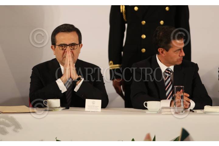 CIUDAD DE MÉXICO, 20OCTUBRE2017.- Enrique Peña Nieto, presidente de México, Idelfonso Guajardo Villareal, Secretario de Economia durante el encuentro empresarial de la colectividad mexicana realizado en la Hacienda de los Morales. FOTO: SAÚL LÓPEZ /CUARTOSCURO.COM