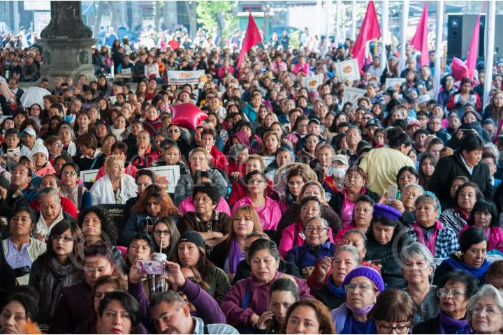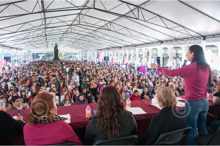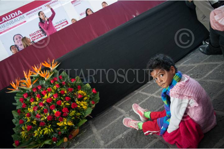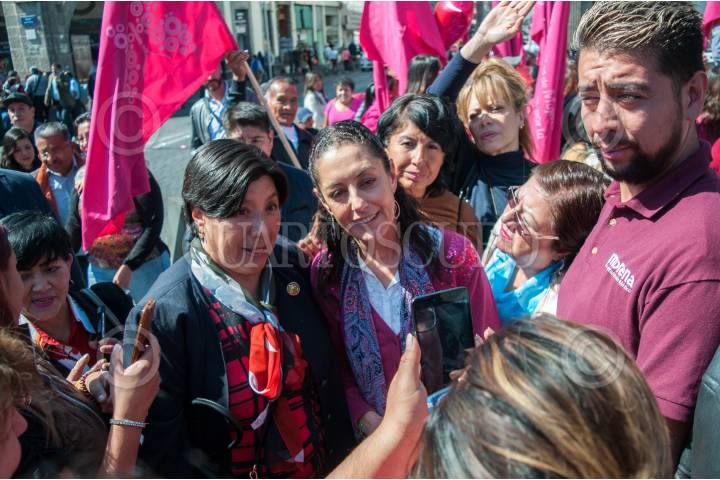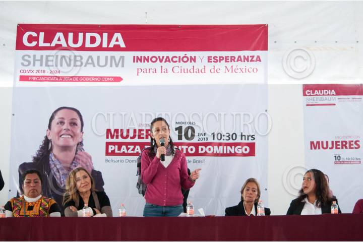 CIUDAD DE MÉXICO, 10ENERO2018.- Claudia Sheinbaum, precandidata por Morena al gobierno de la ciudad, encabezó un encuentro con mujeres capitalinas en la Plaza de Santo Domingo, como parte de sus actividades proselitistas. Durante el acto, asistió FOTO: DIEGO SIMÓN SÁNCHEZ /CUARTOSCURO.COM