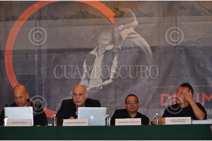 PACHUCA, HIDALGO, 08NOVIEMBRE2013.- En el segundo día del 14 Encuentro Nacional de Fototecas 2013, los especialistas editoriales Jorge Lépez, Alberto Sánchez (Revista Historias-Editorial Raíces), Alberto Tovalín, editor independiente, y José Antonio Rodríguez presentaron la mesa “La fotografía histórica en la producción editorial”. Alberto Sánchez concluyó con la idea de que “el verdadero fondo de la cuestión editorial es la reproducción, dar a conocer, difundir y ampliar el trabajo fotográfico”. En el marco de la celebración de los 20 años del Sistema Nacional de Fototecas (SINAFO) el encuentro tiene preparada una agenda que incluye exposiciones, mesas de discusión y talleres. FOTO: MARÍA JOSÉ MARTÍNEZ / CUARTOSCURO.COM