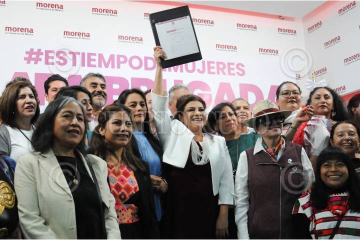 CIUDAD DE MÉXICO, 25SEPTIEMBRE2023. - Acompañada de distintos legisladores locales de Morena, Clara Brugada asistió al CEN de su partido para oficializar su registro como aspirante a la coordinación de la Defensa de la 4T en la Ciudad de México. FOTO: DANIEL AUGUSTO /CUARTOSCURO.COM