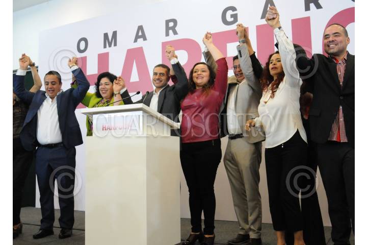 CIUDAD DE MÉXICO, 25SEPTIEMBRE2023. - Con el respaldo de legisladoras y legisladores locales de Morena, Omar García Harfuch anunció frente a los medios su registro como aspirante a coordinador de los Comités de la Defensa de la 4T en la Ciudad de México. FOTO: DANIEL AUGUSTO /CUARTOSCURO.COM