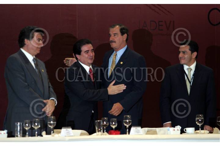 México, D. F. 28 Abril 2004.- Hétor Aguirre, presidente nacional de la camara de la industria de desarrollo y promoción de vivienda saluda al presidente Vicente Fox durante la clausura del XVIII encuetro internacional de vivienda. FOTO: Nelly Salas/CUARTOSCURO.COM