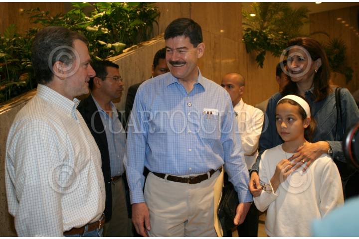 México, D. F. 29 Mayo 2004.- Santiago Creel, secretario del gobernación y Francisco Barrio acompañado de su familia, conversan previó a la participación de Creel en el encuentro interestatal con jóvenes. FOTO: Nelly Salas/CUARTOSCURO.COM
