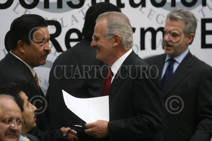 MÉXICO, D.F 20MAYO2008.- Carlos Navarrete coordinador de la fracción perredista del Senado de la República saluda a Francisco Labastida durante el análisis constitucional de las iniciativas de la reforma energética.FOTO: SASHENKA GUTIERREZ/CUARTOSCURO.COM
