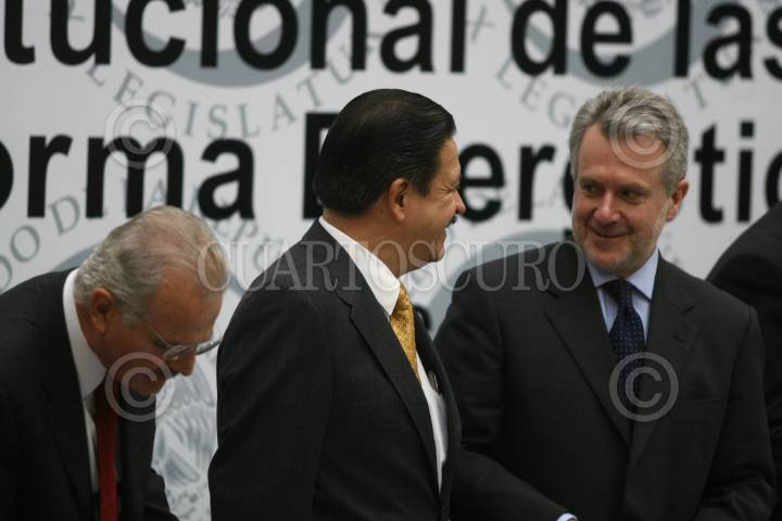 MÉXICO, D.F 20MAYO2008.- Los senadores Francisco Labastida, Carlos Navarrete coordinador de la fracción perredista del Senado de la República y Santiago Creel Presidente de la mesa directiva del Senado de la República durante el análisis constitucional de las iniciativas de la reforma energética.FOTO: SASHENKA GUTIERREZ/CUARTOSCURO.COM