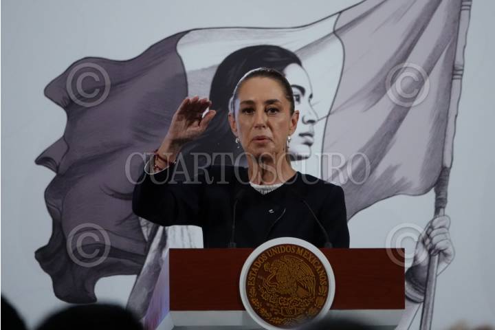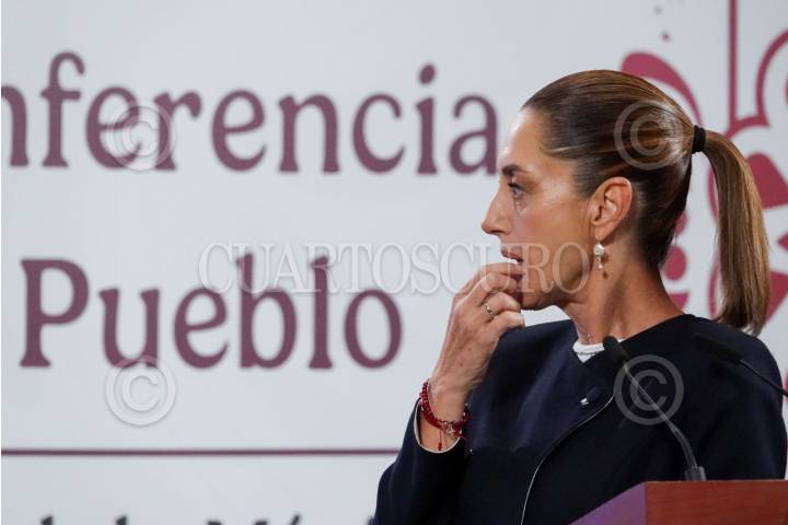 CIUDAD DE MÉXICO, 26AGOSTO2025.- Claudia Sheinbaum Pardo, presidenta de México, encabezó la conferencia de prensa matutina en la que anunció la construcción de una Planta Termosolar en Baja California. FOTO: GALO CAÑAS/CUARTOSCURO.COM