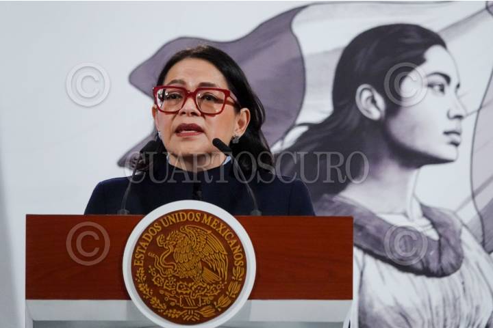 CIUDAD DE MÉXICO, 26AGOSTO2025.- Claudia Sheinbaum Pardo, presidenta de México, y Luz Elena González Escobar, secretaria de Energía, durante la conferencia de prensa matutina en la que anunció la construcción de una Planta Termosolar en Baja California. FOTO: GALO CAÑAS/CUARTOSCURO.COM