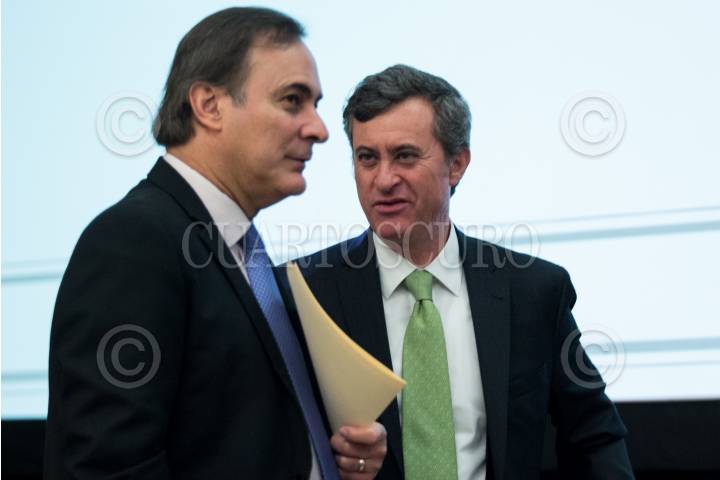 CIUDAD DE MÉXICO, 03OCTUBRE2018.- Juan Pablo Castañón Castañón, presidente del Consejo Coordinador Empresarial, y José Ramón Ardavin, director del Centro de Estudios del Sector Privado para el Desarrollo Sustentable (Cespedes), durante la presentación del Estudio de Energías Limpias en México 2018-2032 para dar detalles de los avances y requerimientos para una cultura de energías verdes en el país. FOTOS: GALO CAÑAS /CUARTOSCURO.COM
