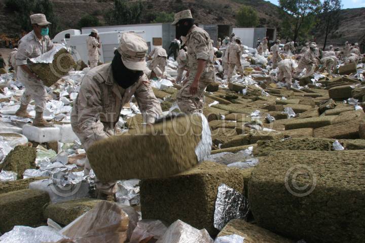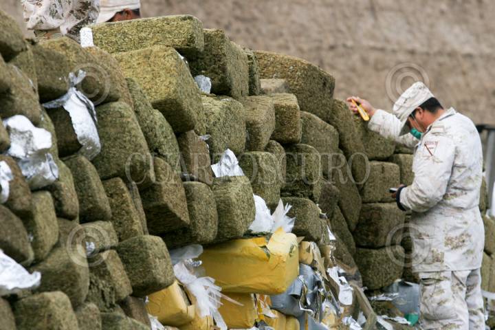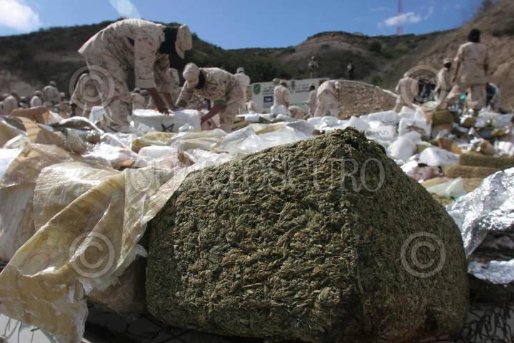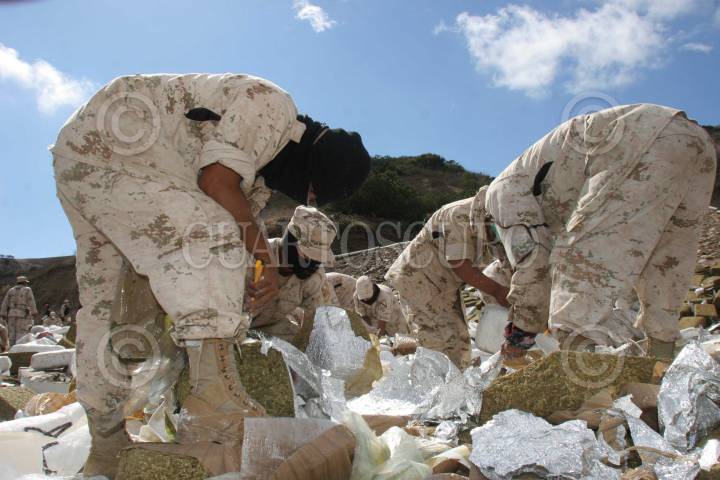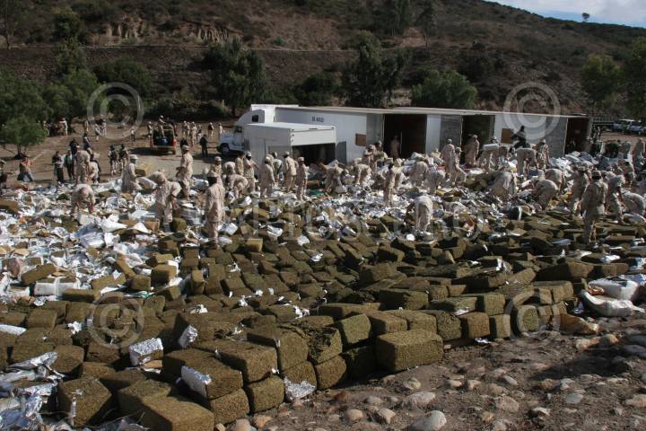 TIJUANA, BAJA CALIFORNIA, 20OCTUBRE2010.- Las 134 toneladas de marihuana que fueron confiscadas hace unos días por policías preventivos, estatales y el ejército en una acción conjunta se disponen a ser incineradas por militares en el Centro de Adiestramiento Militar de la Segunda Zona Militar. FOTO: SAÚL LÓPEZ/CUARTOSCURO.COM