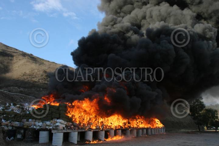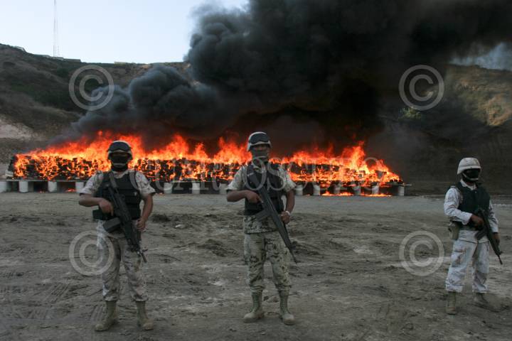 MÉXICO, D.F., 21OCTUBRE2010.- Imágenes del día 20 de Octubre en las instalaciones de la zona militar numero 2 de la quema de más de 134 toneladas de marihuana decomisadas en Baja California Norte y que valían más de 196 mil millones de dólares en el mercado negro en los Estados Unidos de Norteamérica. FOTO: SAÚL LÓPEZ/CUARTOSCURO.COM
