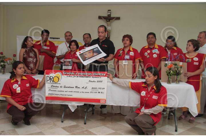 CANCÚN, QUINTANA ROO, 21OCTUBRE2008.- La Fundación Caritas en el estado obtuvo un beneficio donativo por parte de los clientes de Oxxo Cancún y Playas del Carmen. El donativo de 223 mil pesos fue entregado por Víctor Mendoza como representante de las tiendas y a nombre de los clientes al director de Caritas Alejandro de Hoyos. FOTO: MARCO POLO GUZMÁN HERNÁNDEZ/CUARTOSCURO.COM