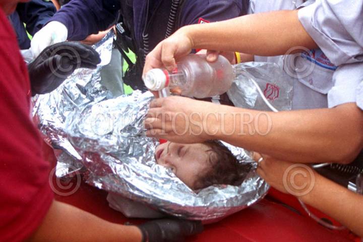 MEXICO, D.F. 13AGOSTO2005.- Paramedicos trasladaron a una niña desde el municipio de Nezahuacoyotl hacia el Hospital Infantil de México. FOTO: Oscar López/CUARTOSCURO.COM