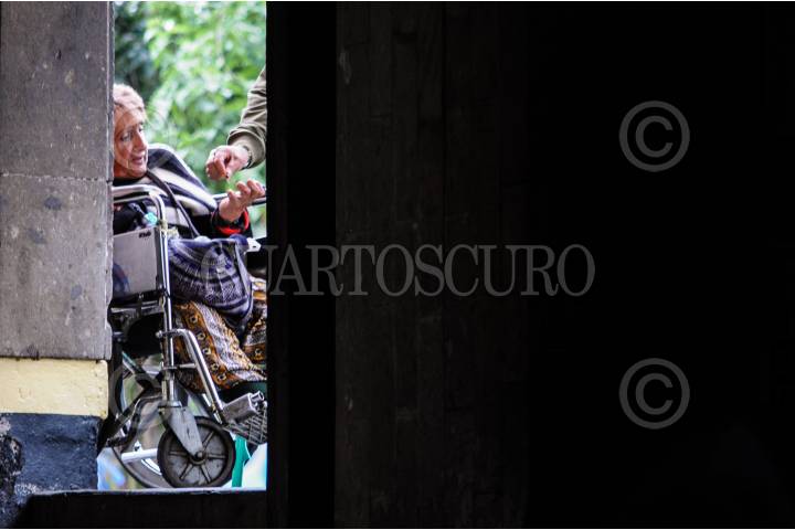 CIUDAD DE MÉXICO, 30SEPTIEMBRE2017.- Una mujer de la tercera edad en silla de ruedas recibe una limosna afuera de la iglesia de San Hipolito de la colonia Centro. FOTO: DIEGO SIMÓN SÁNCHEZ /CUARTOSCURO.COM