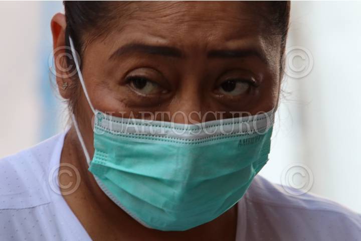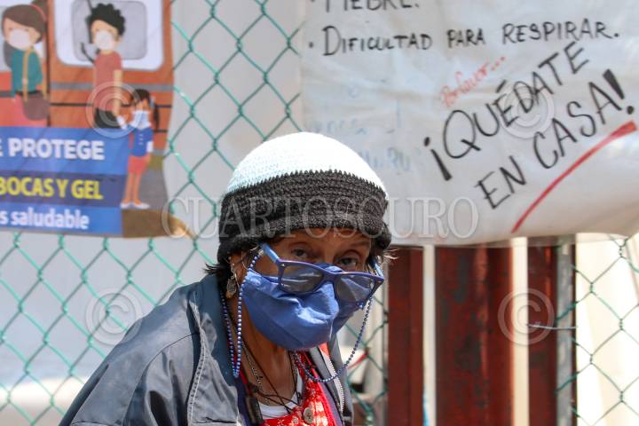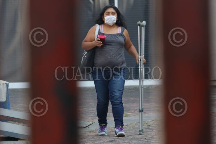 Una mujer, adulto mayor, espera afuera del Hospital Belisario Domínguez, el cual atiende a pacientes de COVID-19.
