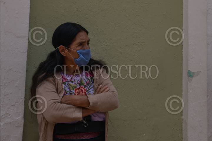 Aurora y su hijo Noe, cuentan cuentos cubre bocas llevan, tienen que completar sesenta docenas lo antes posible, ella, desde hace unos días, despierta a las 5 de la mañana para coser, de nuevo, como lo hacía antes de que los turistas dejaran de visitar Chiapas, solo que ahora cose una tela blanca sobre rectángulos de telas de colores con sus bordados y sus colores.