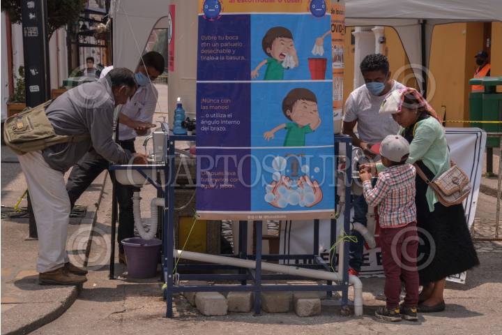 Autoridades municipales instalaron lavamanos en diferentes puntos del municipio para contener el contagio de COVID 19 en la entidad.