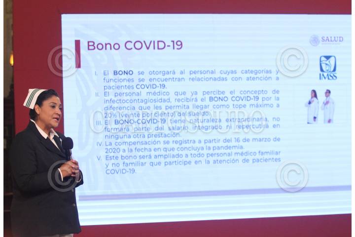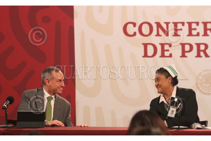 La Jefa Fabiana, jefa de enfermeras del IMSS, durante la conferencia del día 20 de abril cuando acompaño al subsecretario Hugo López-Gatell, en Palacio Nacional
