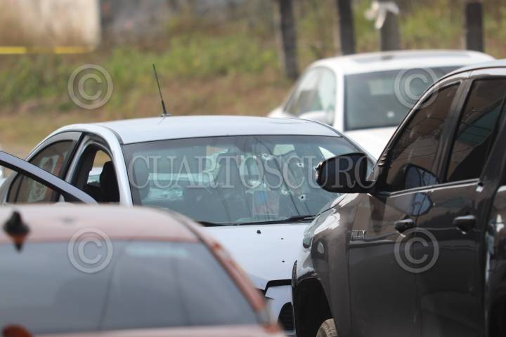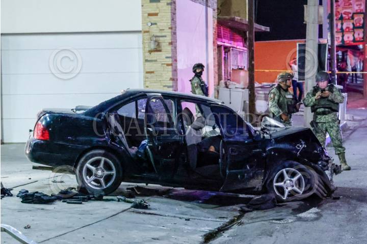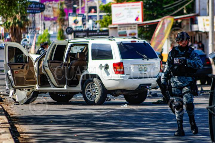 CULIACÁN, SINALOA, 08JUNIO2025.- Así quedó el vehículo involucrado en el enfrentamiento registrado en las inmediaciones de una gasolinera sobre el bulevar Agricultores, donde dos presuntos gatilleros fueron abatidos y cuatro personas resultaron víctimas colaterales. Elementos del Ejército resguardaron la zona y desplegaron un operativo tras las intensas detonaciones de arma de fuego reportadas por testigos. En el lugar, autoridades aseguraron armas largas, chalecos tácticos y municiones. También se localizaron rastros de sangre, casquillos percutidos y fragmentos de carrocería, los cuales fueron recopilados por personal militar en cajas de cartón y plástico transparente como parte de la investigación en curso. FOTO: JOSÉ ZÁRATE/CUARTOSCURO.COM