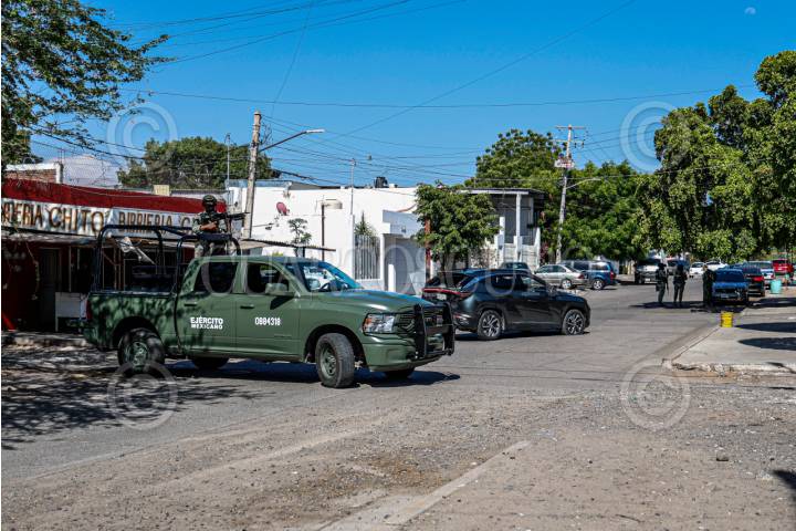 CULIACÁN, SINALOAS, 13AGOSTO2025.- Un enfrentamiento entre fuerzas de seguridad y civiles armados dejó un muerto y varios detenidos en Loma de Rodriguera, al norte de Culiacán. El operativo se desplegó tras el ataque a una patrulla estatal en el sector Los Ángeles, cerca del Hospital General. En la zona del enfrentamiento, los agresores fueron localizados y repelidos por autoridades, resultando en un abatido y múltiples capturas. La calle Séptima permanece acordonada con fuerte presencia militar, mientras familiares de los detenidos denuncian que hay heridos dentro de un salón de eventos, lo que ha generado tensiones y cruce de palabras con los elementos de seguridad. Hay que recordar que la semana pasada una situación similar sucedió en Guamuchil, cuando familiares de los detenidos se hicieron de palabras con los elementos castrenses, consecuencia de ello hubo lanzamientos de gas lacrimógeno y disparos al aire. FOTO: JOSÉ BETANZOS/CUARTOSCURO.COM