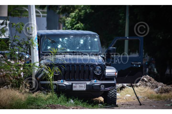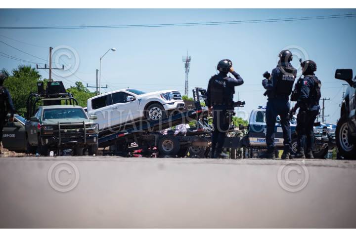 CULIACÁN, SINALOA, 09SEPTIEMBRE2024.- Una serie de enfrentamientos se dio la mañana de este lunes al sur de la ciudad de Culiacán, a la altura del Splash Club. El mayor enfrentamiento tuvo su epicentro en la sindicatura de Costa Rica, donde, tras el enfrentamiento, se decomisaron poco más de 10 vehículos con múltiples impactos de bala. En el lugar, efectivos de la SEDENA, la policía estatal y personal de tránsito municipal retiraron los vehículos con ayuda de grúas para liberar el acceso. FOTO: JOSÉ BETANZOS/CUARTOSCURO.COM