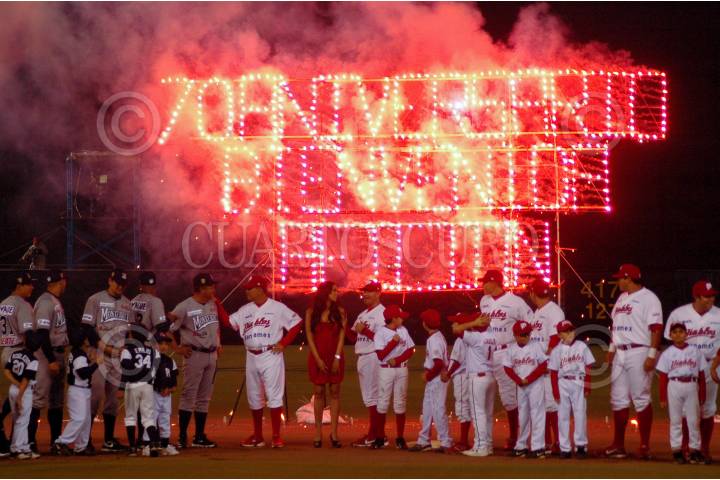 MÉXICO D.F., 18MARZO2010.- Esta noche se enfrentaron los Diablos Rojos del México y los Sultanes de Monterrey en este día que iniciaron las actividades de la Temporada Bicentenaria 2010 de la Liga Mexicana de Beisbol en el Foro Sol y que también se celebro el 70 aniversario de los Diablos Rojos. FOTO: RODOLFO ANGULO/CUARTOSCURO.COM