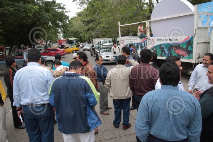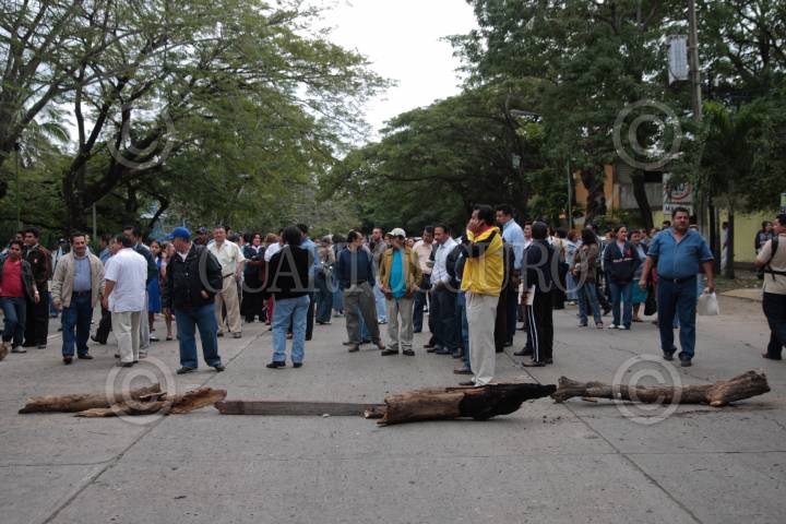 VILLAHERMOSA, TABASCO, 12ENERO2010.- Debido al engaño de las autoridades gubernamentales de que les pagarían el aguinaldo; al menos un centenar de educadores volvieron a bloquear con troncos de árboles el velódromo de la ciudad deportiva y en esta ocasión amenazan con parar las clases de todos lo niveles si no reciben respuesta favorable en el a trazo a su pago ya ganado y que por ley les pertenece. FOTO: MARCO POLO GUZMÁN HERNÁNDEZ/CUARTOSCURO.COM