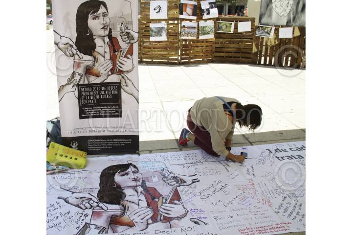 CIUDAD DE MÉXICO,09JULIO2016.- Diferentes organizaciones en defensa de los derechos humanos realizaron actividades en el marco de la Jornada Nacional de la Participación Ciudadana para la Prevención de la Trata de Personas, que organizó la CNDH, en la explanada oriente del Monumento a la Revolución. FOTO: ANTONIOI CRUZ /CUARTOSCURO.COM