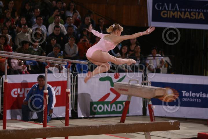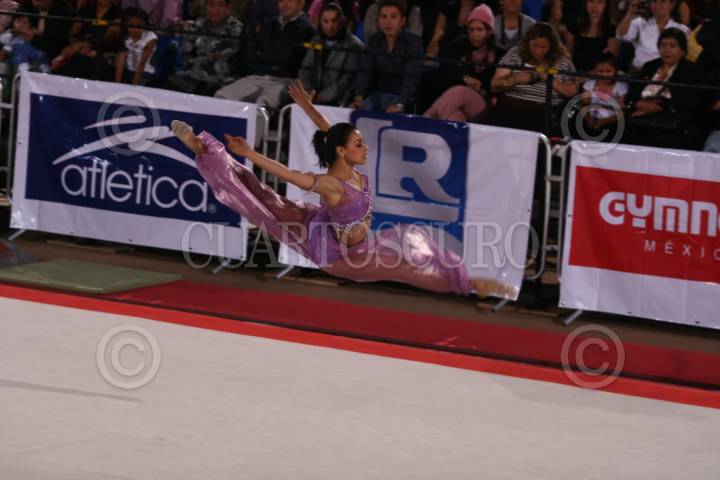 MÉXICO D.F., 02MARZO2008.- Gimnastas olimpicos se dieron cita en la Alberca Olimpica en donde engalanaron la noche con acrobacias. En la imagen : Elsa Garcia FOTO: SASHENKA GUTIERREZ/ CUARTOSCURO.COM