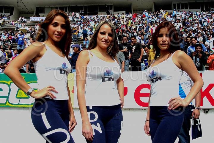 PUEBLA, PUEBLA, 06SEPTIEMBRE2009.- Bellas edecanes engalanaron el partido entre el Puebla de la Franja contra las Chivas Rayadas del Guadalajara, en el estadio Cuauhtémoc, durante un reñido encuentro los camoteros fueron dominandos en segundo tiempo, pero a los últimos minutos del partido el equipo de Chivas logró meter el gol del empate dejando marcador final de 2 a 2. FOTO: FRANCISCO GUASCO/CUARTOSCURO.COM
