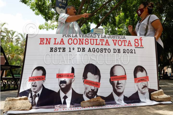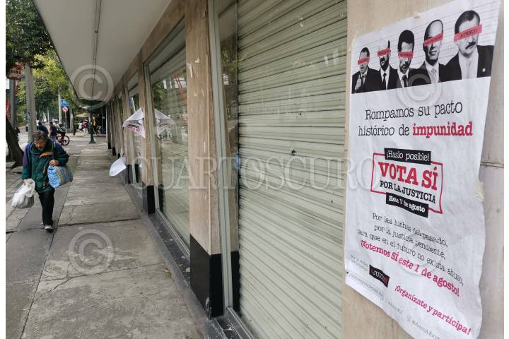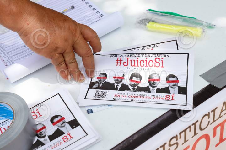 En varias calles de alcaldía Cuauhtémoc se han pegado decenas de cárteles para invitar a la población a participar en la consulta que buscar enjuiciar a los ex Presidente de México, a partir del mandato de Carlos Salinas de Gortari.