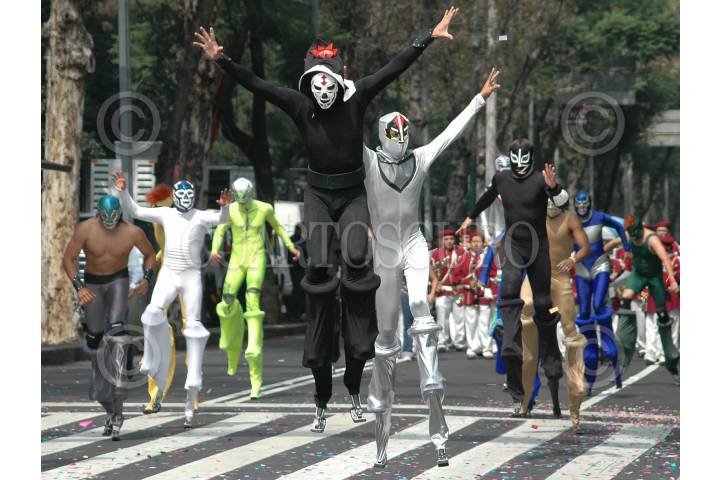 MÉXICO, D.F., 13SEPTIEMBRE2009.-Esta tarde inició sobre paseo de la Reforma, el desfile de Niños por el Bicentenario con carros alegóricos, deportistas y artistas sobre zancos. FOTO: LUZ MORENO/CUARTOSCURO.COM