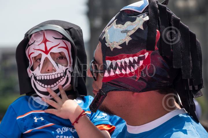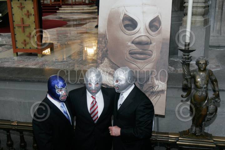 MÉXICO, D.F., 05FEBRERO20009.- Blue Demon Jr., El Hijo del Santo, Axel "El Nieto del Santo", durante la misa en honor a el Santo "El Enmascarado de Plata", quien cumple 25 años de su deceso. Seguidores, amigos y familiares se dieron cita en la Catedral Metropolitana para recordar a quien en vida se llamará Rodolfo Guzman. A casi un cuarto de siglo de su muerte el enmascarado de plata será recordado en una serie de actividades. FOTO: IVÁN MENDEZ/CUARTOSCURO.COM