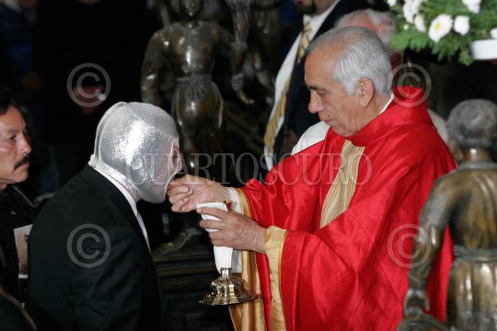 MÉXICO, D.F., 05FEBRERO20009.- El Hijo del Santo, cuyo padre fue el Santo "El Enmascarado de Plata", asistió a la misa en honor a su padre quien cumple 25 años de su muerte, el servicio religiosos se realizó en la Catedral Metropolitana, lo acompañaron amigos de la familia, seguidores y luchadores. FOTO: IVÁN MENDEZ/CUARTOSCURO.COM