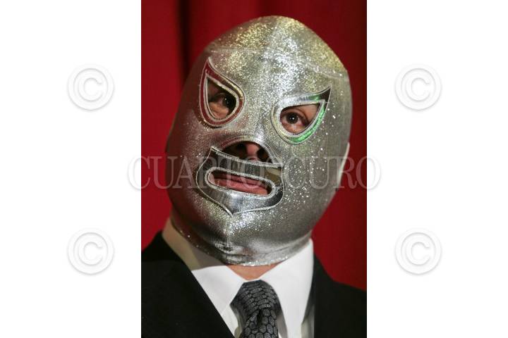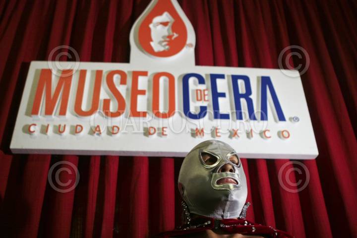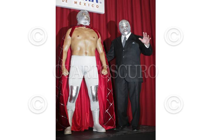 MÉXICO, D.F., 03FEBRERO2011.- El Hijo del Santo acudió a la presentación de la figura de cera del mítico luchador El Santo, el enmascarado de plata, en el Museo de Cera en la colonia Juárez. FOTO: ISAAC ESQUIVEL/CUARTOSCURO.COM