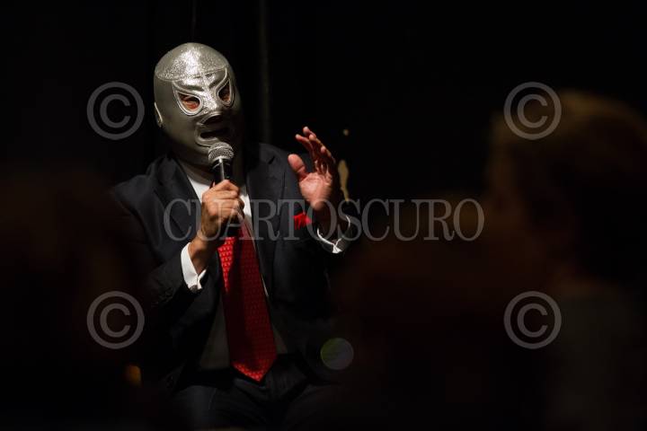 MÉXICO, D.F., 14ABRIL2015.- El hijo del Santo cerró el ciclo de conferencias "SANTO: Enmascarado de plata" en el Centro Cultural del Bosque. FOTO: IVÁN STEPHENS /CUARTOSCURO.COM