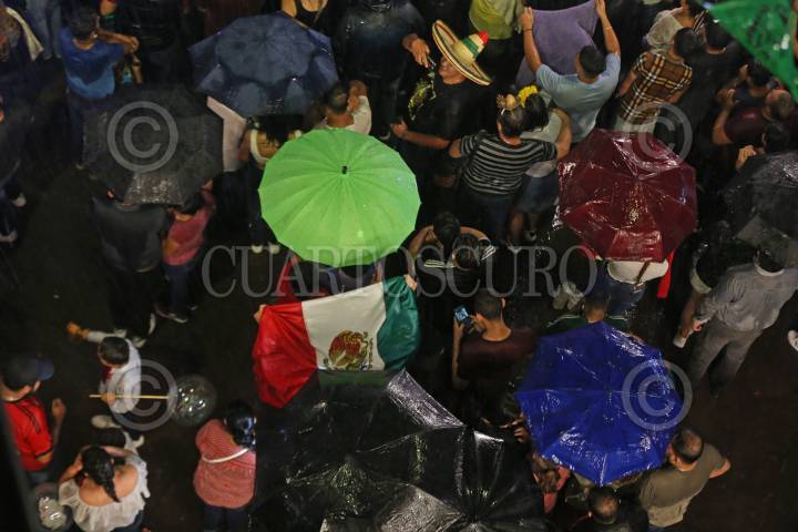 A pesar de la fuerte lluvia, cientos de familias esperaron en Plaza de Armas para disfrutar del Grito de Independencia en Guadalajara.