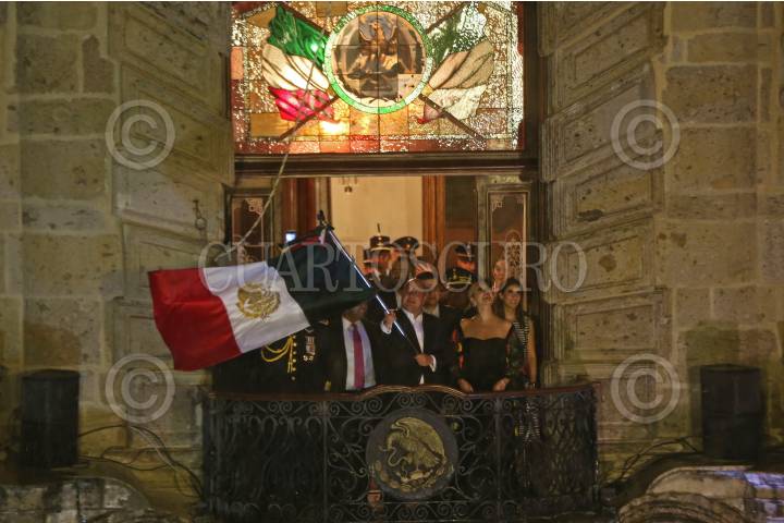 Enrique Alfaro Ramírez, Gobernador del estado, durante el tradicional grito de independencia desde el balcón de Palacio de Gobierno ante cientos de personas que asistieron a la Plaza de Armas