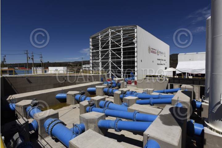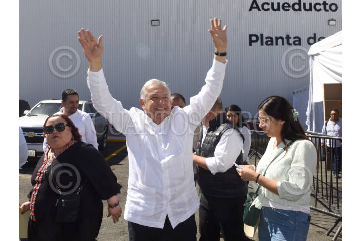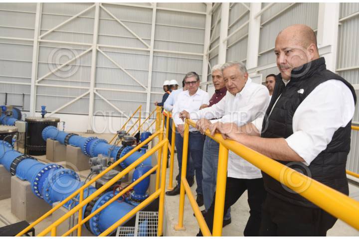 VALLE DE GUADALUPE, JALISCO, 23FEBRERO2024.- Andrés Manuel López Obrador, presidente de México, encabezó la Inauguración del Acueducto El Salto - La Red – Calderón en compañía de: Jose Antonio Zamora Gayoso, subdirector general de Administración del Agua; Juan Pablo de Botton Falcón, subsecretario de Egresos de la Secretaría de Hacienda y Crédito Público; Enrique Alfaro Ramírez, gobernador de Jalisco; Germán Arturo Martínez Santoyo, director general de la Comisión Nacional del Agua (Conagua); Claudia Gómez Godoy, encargada de la presa El Zapotillo y del Plan de Justicia para los pueblos de Temacapulin, Acasico y Palmarejo y Felipe Zataráin Mendoza, Subdirector General de Agua Potable, Drenaje y Saneamiento. FOTO: PRESIDENCIA/CUARTOSCURO.COM