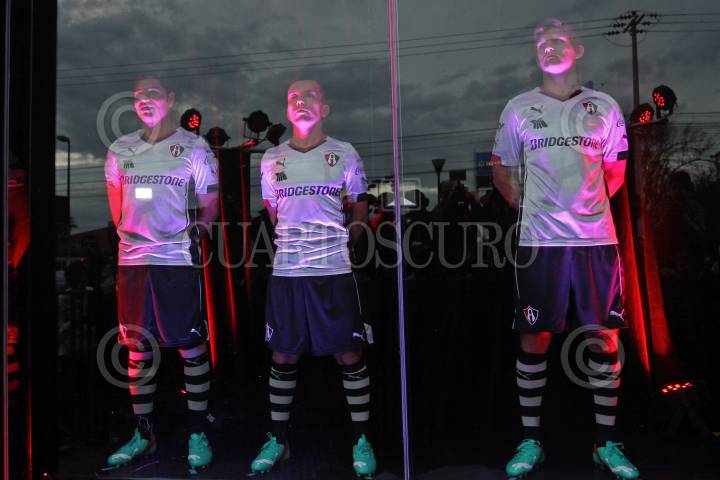 ZAPOPAN, JALISCO, 05ENERO2015.- Juan Pablo Rodríguez, Enrique Pérez y Walter Kennemann durante la presentación del Tercer Jersey de los Rojinegros del Atlas para el próximo Torneo Clausura 2015 de la Liga MX, el lanzamiento tuvo lugar en una conocida tienda de ropa deportiva. FOTO: FERNANDO CARRANZA GARCIA / CUARTOSCURO.COM