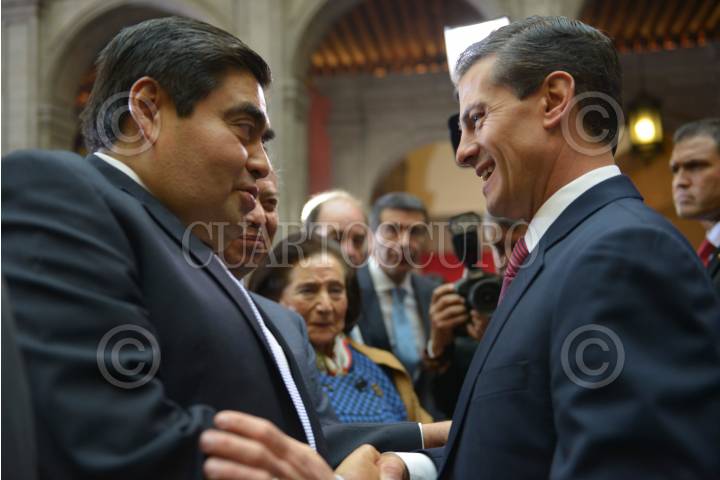 MÉXICO, D.F., 29ENERO2016.- Los senadores del PRD Miguel Barbosa y Armando Ríos Piter, y Porfirio Múñoz Ledo, asistieron a la ceremonia de la promulgación de la Reforma Política de la Ciudad de México encabezada por el Presidente Enrique Peña Nieto. FOTO: PRESIDENCIA /CUARTOSCURO.COM