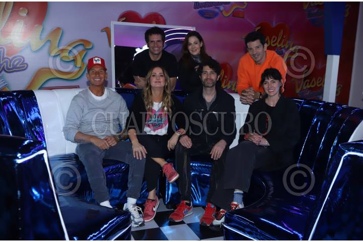 CIUDAD DE MÉXICO, 19OCTUBRE2023. Erik Rubín, Andrea Legarreta, Alix Bauer, Benny Ibarra, Diego Schoening, Yahir y Veronica Jaspeado al término de los ensayos del musical “Vaselina Timbiriche”, que presentará su segunda temporada en el CCT1. FOTO: EDGAR NEGRETE LIRA/CUARTOSCURO.COM
