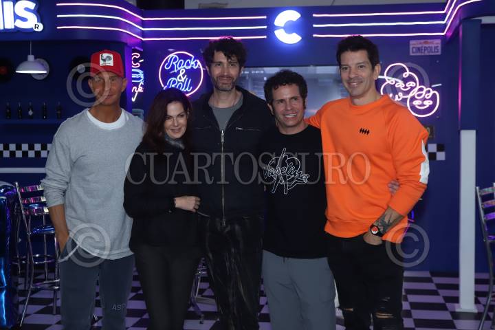 CIUDAD DE MÉXICO, 19OCTUBRE2023. Erik Rubín, Alix Bauer, Benny Ibarra, Diego Schoening y Yahir al término de los ensayos del musical “Vaselina Timbiriche”, que presentará su segunda temporada en el CCT1. FOTO: EDGAR NEGRETE LIRA/CUARTOSCURO.COM